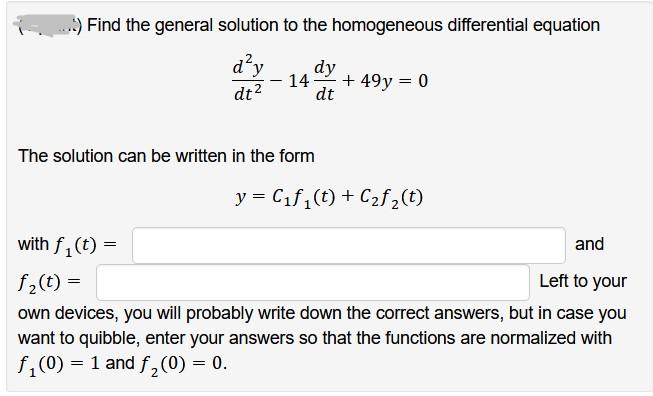 Solved Find The General Solution To The Homogeneous Chegg Com